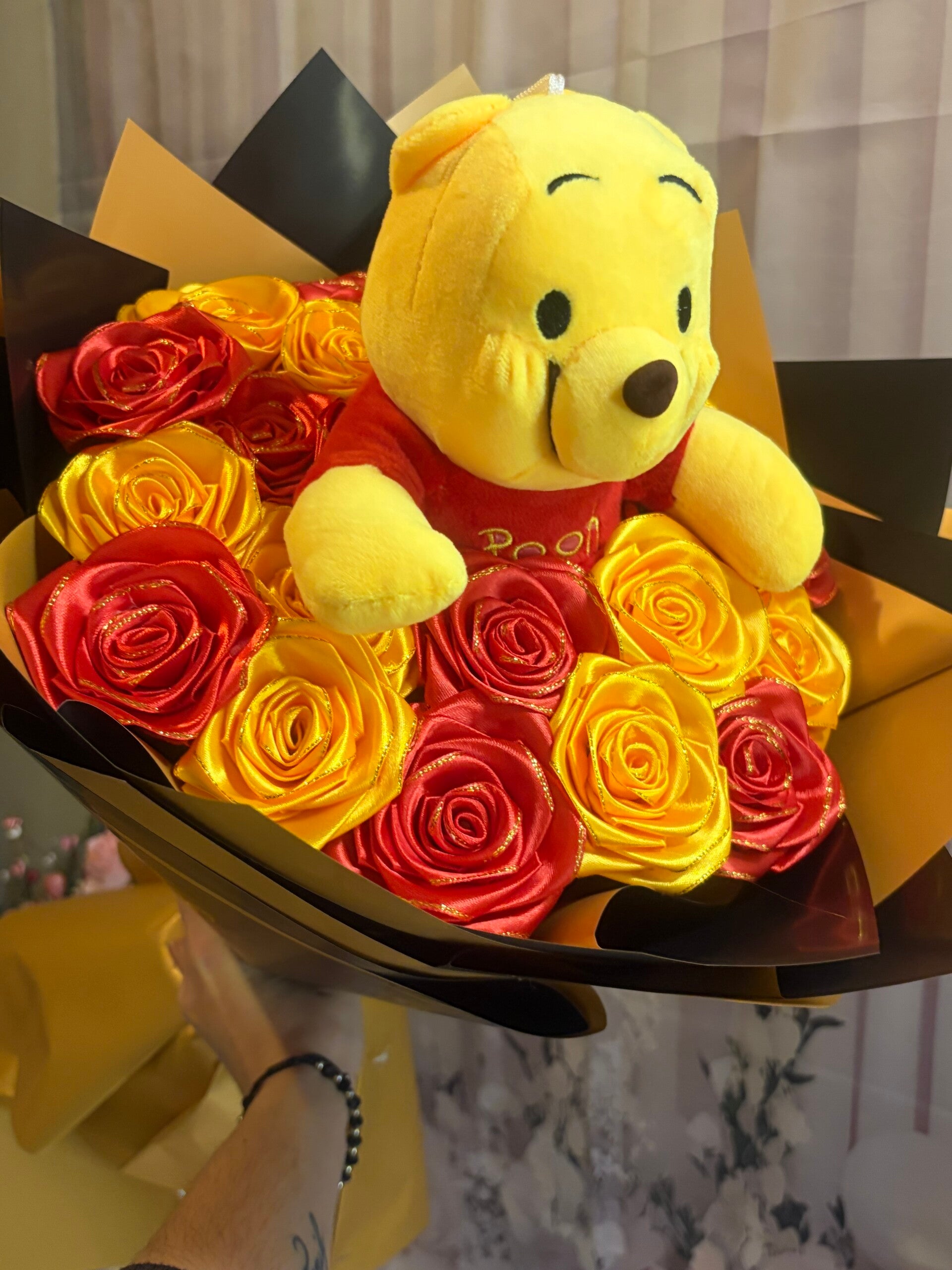 Bouquet Pooh 22 rose in raso